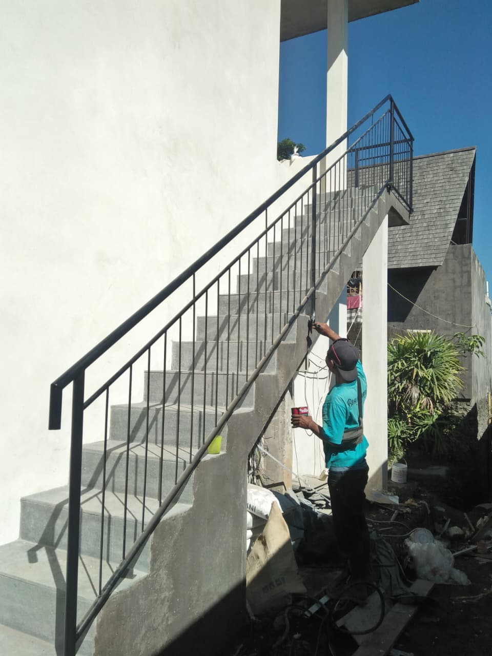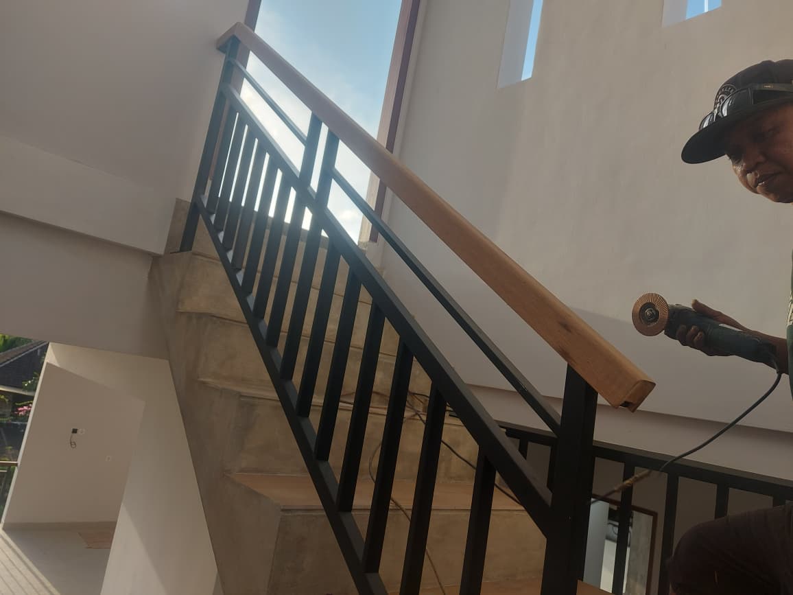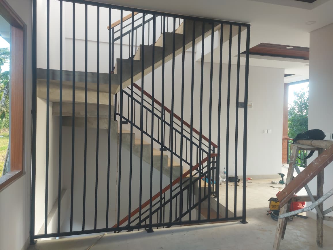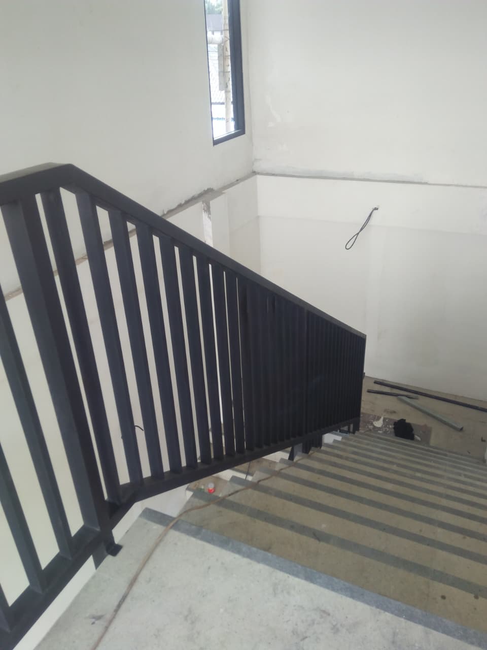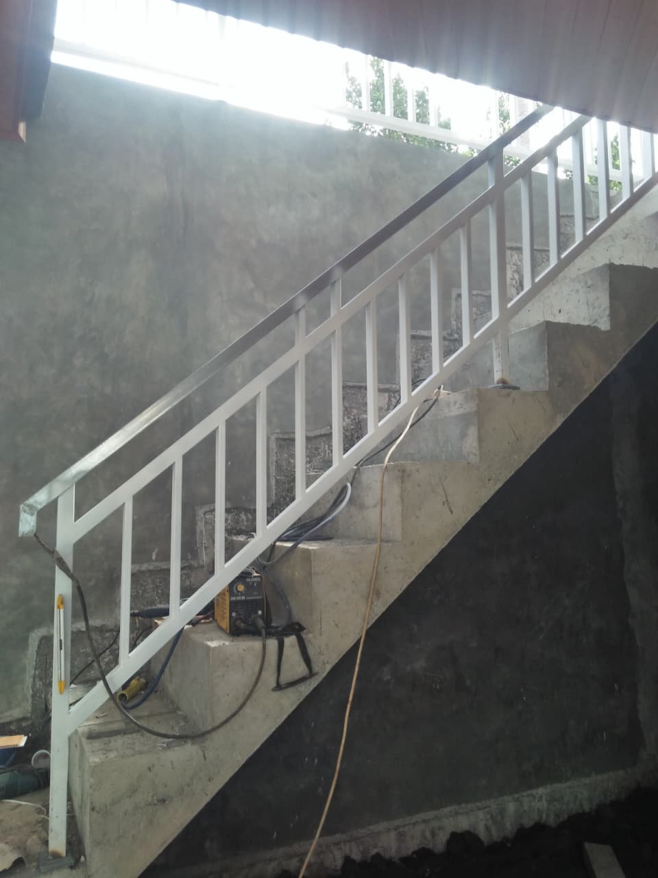 Railing tangga dan balkon dengan desain modern dan finishing rapi.