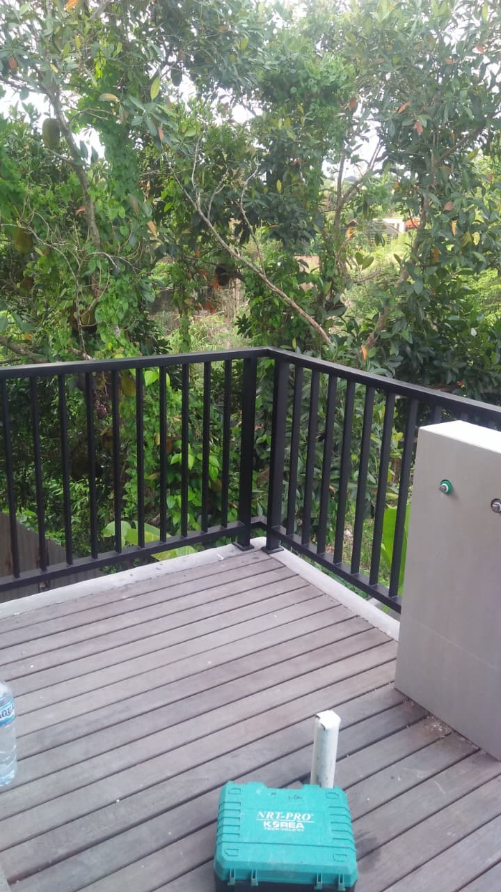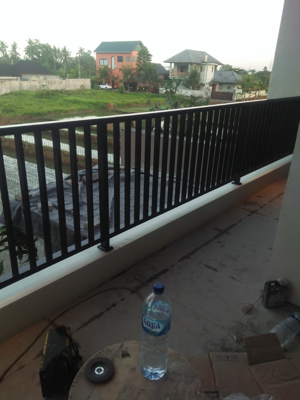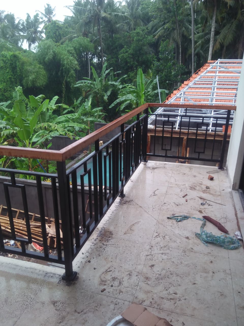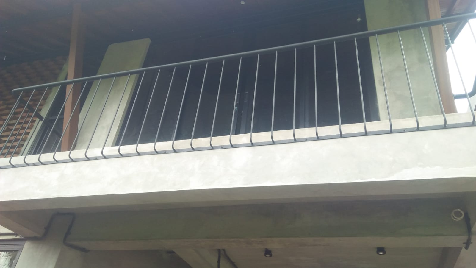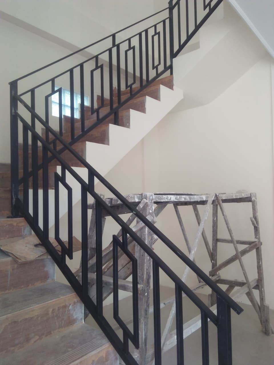 Railing tangga dan balkon dengan desain modern dan finishing rapi.