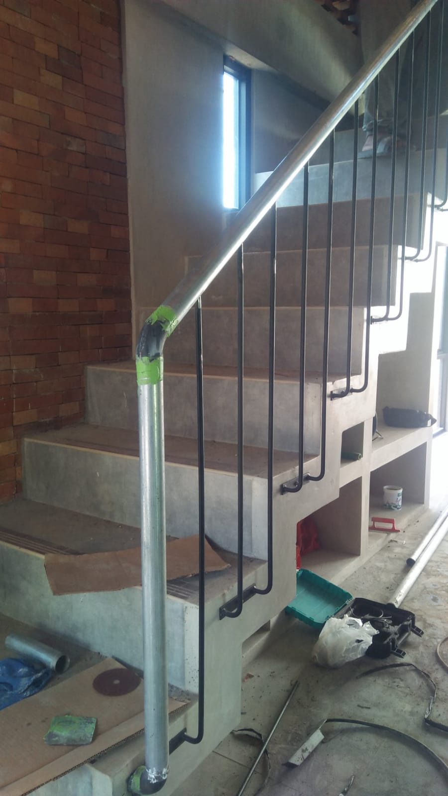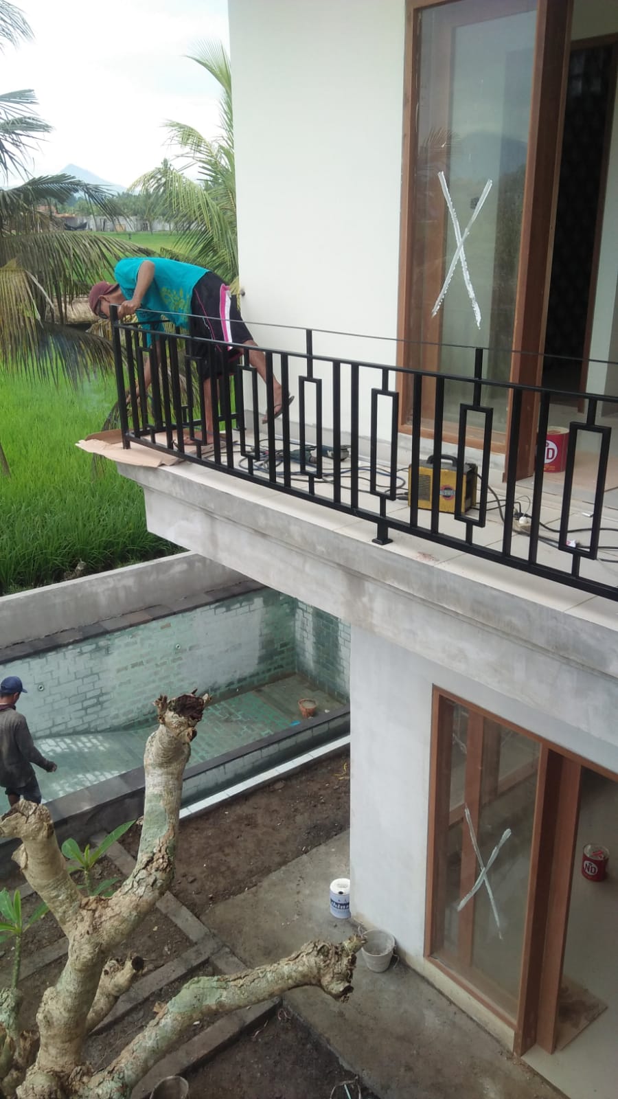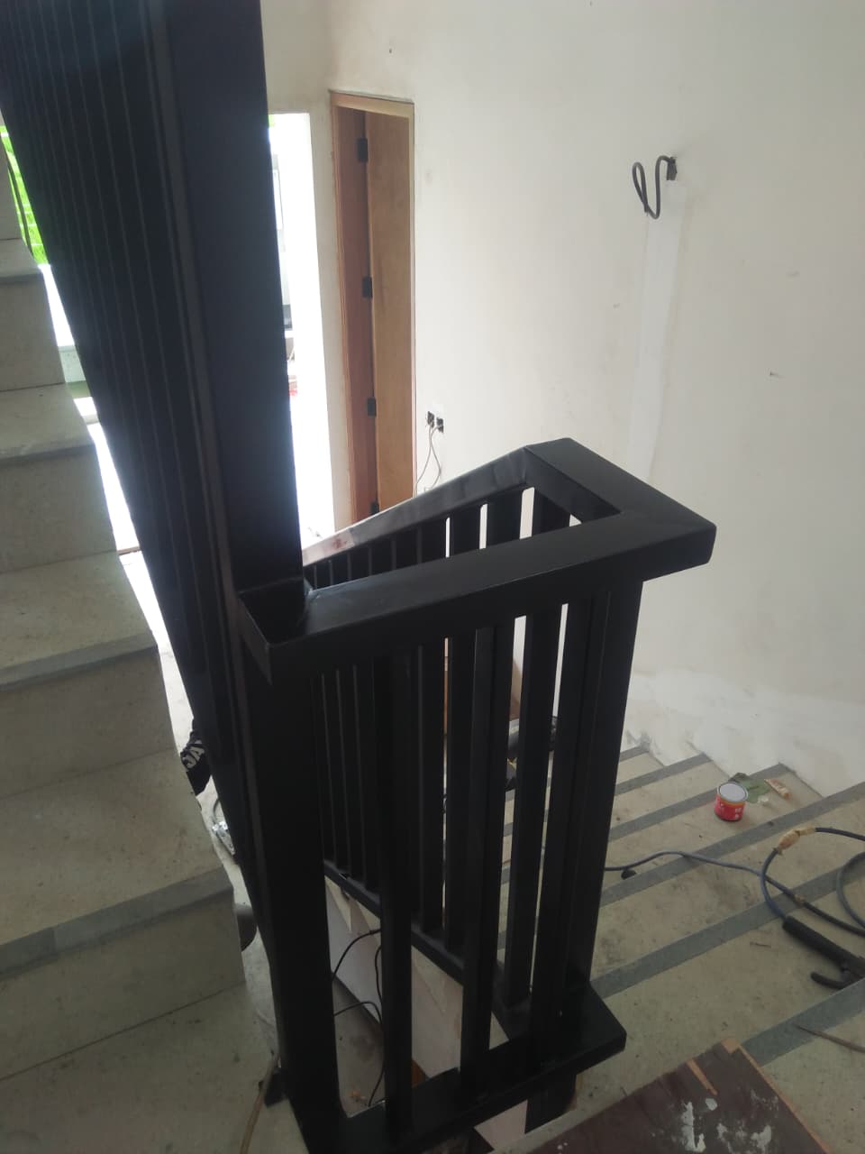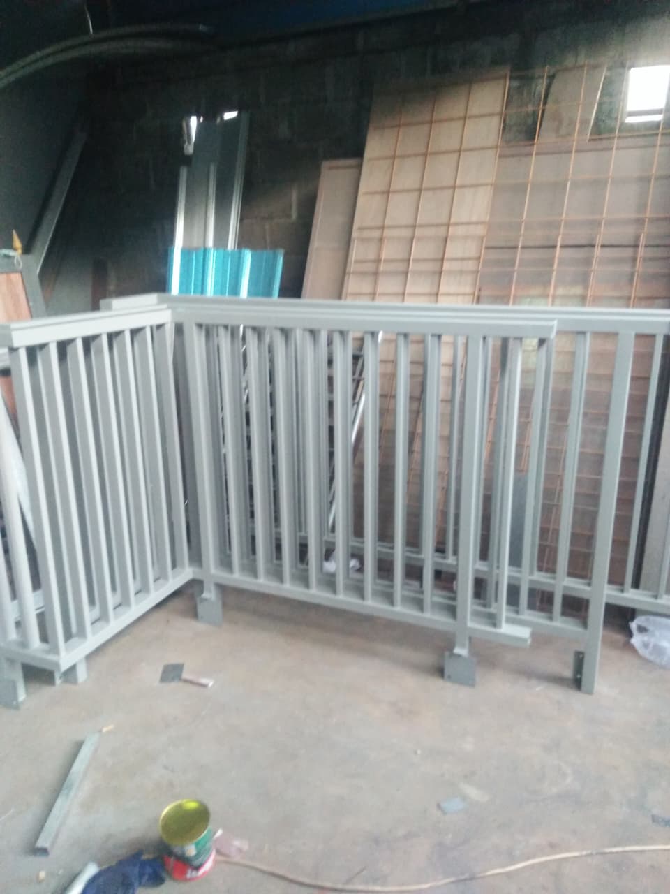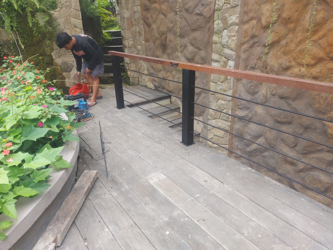 Railing tangga dan balkon dengan desain modern dan finishing rapi.
